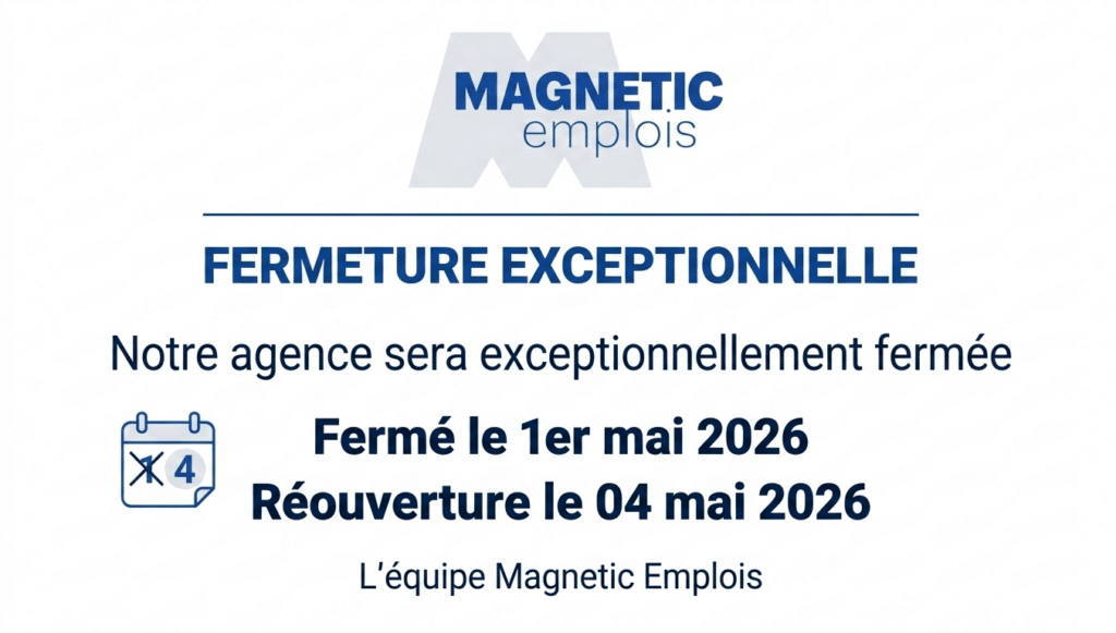 Vous êtes à la recherche d’un travail temporaire ou d’un poste fixe ? Vous pouvez consulter toutes nos offres d’emploi et déposer une candidature auprès des équipes Magnetic Emplois.